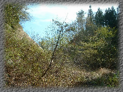 以前、行き止まりと感じた場所だ。見覚え会った。藪が無くなり、先が見えるようになっているが、以前は、見通せなかった。それも、道も半分以上決壊しているので、当然、行き止まりと感じてしまったのだろう...
